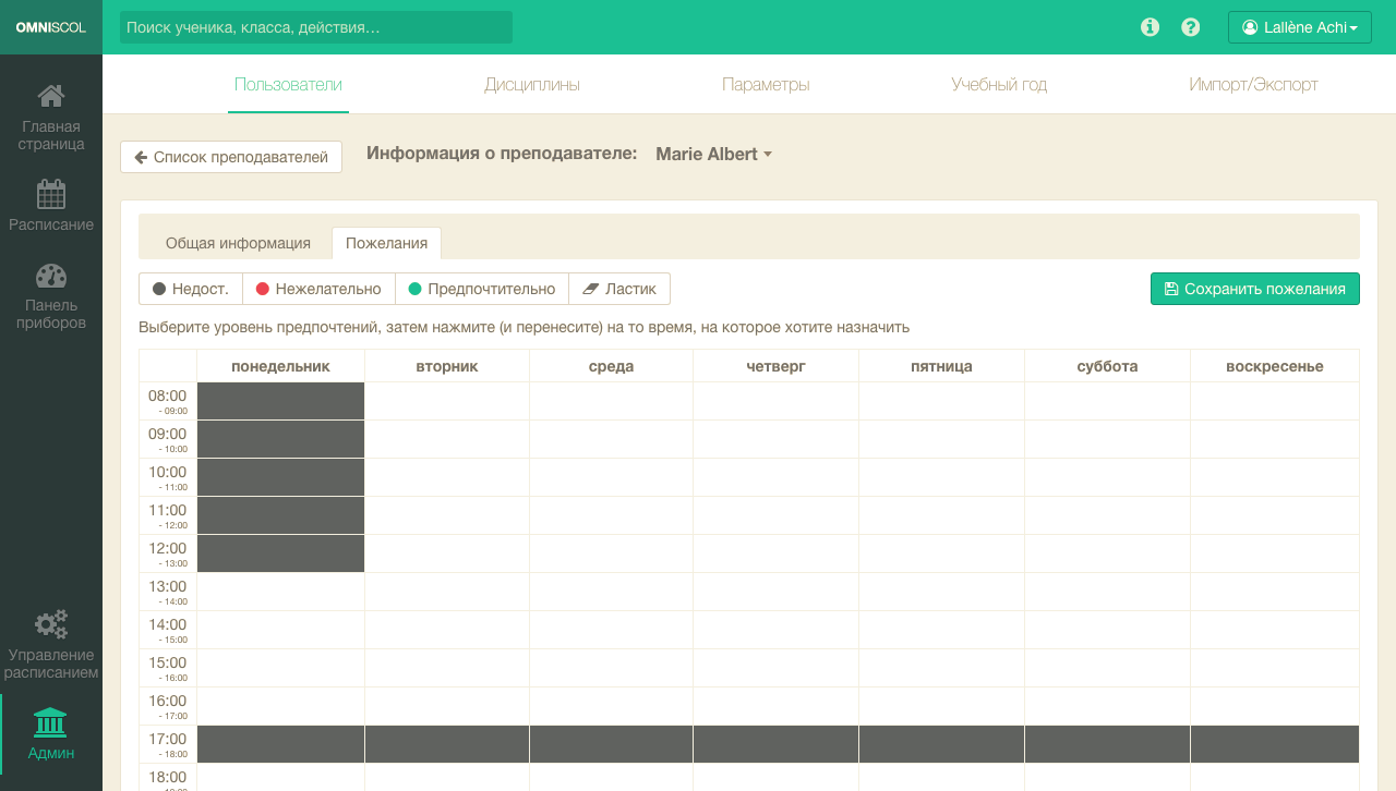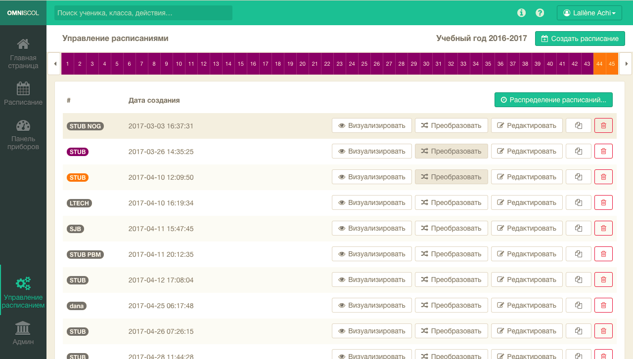 Распределение по неделе : зеленая школа, неделя экзаменов, новое расписание, которое легко настроить