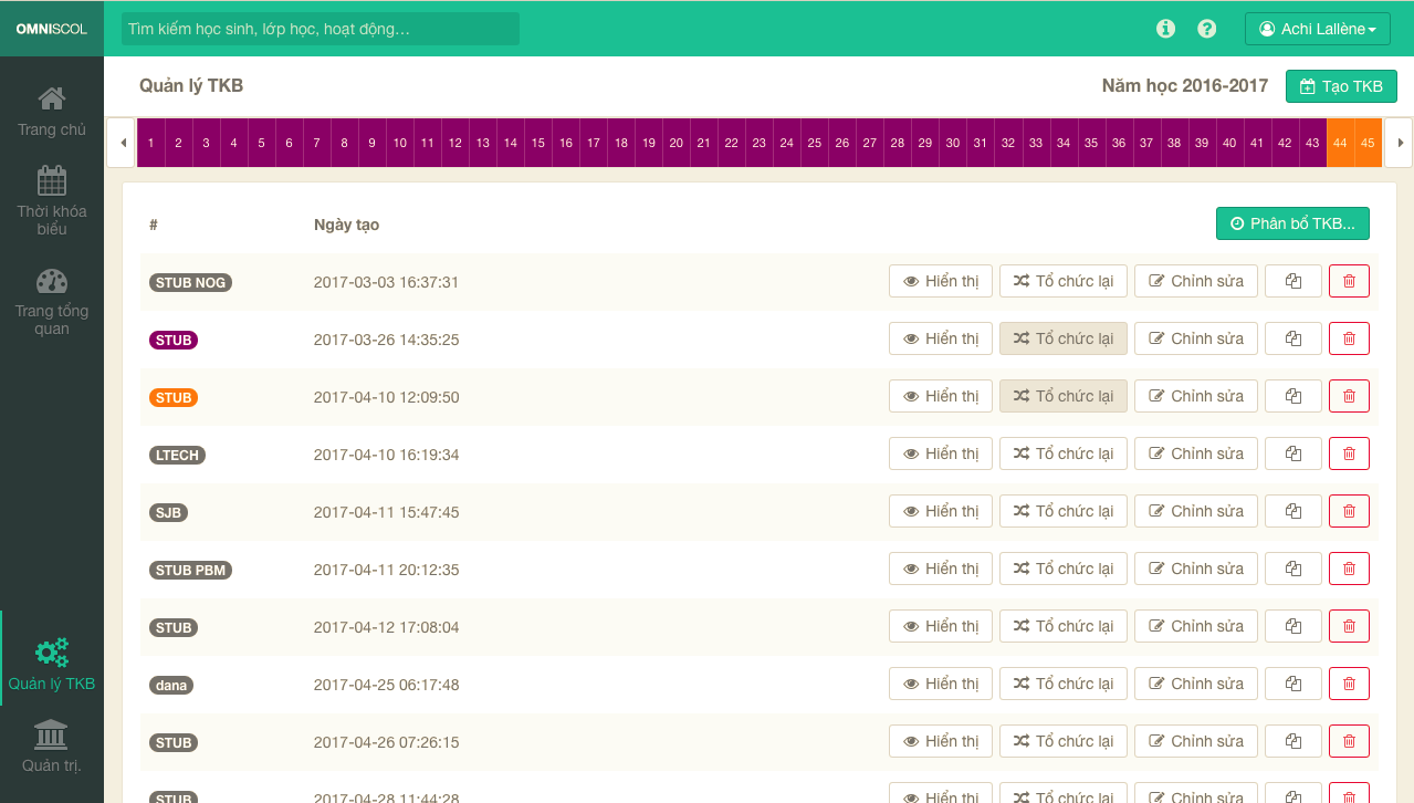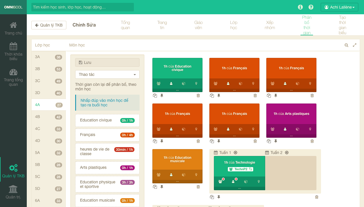 Phân bổ theo tuần : Hoạt động ngoài trời, tuần kiểm tra, một thời khóa biểu mới, tạm thời sẽ dễ dàng phân bổ